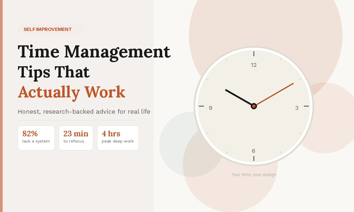 Struggling to get more done without burning out? This guide covers self improvement time management tips that actually stick — backed by research, honest about the hard parts, and built for real people with real schedules.